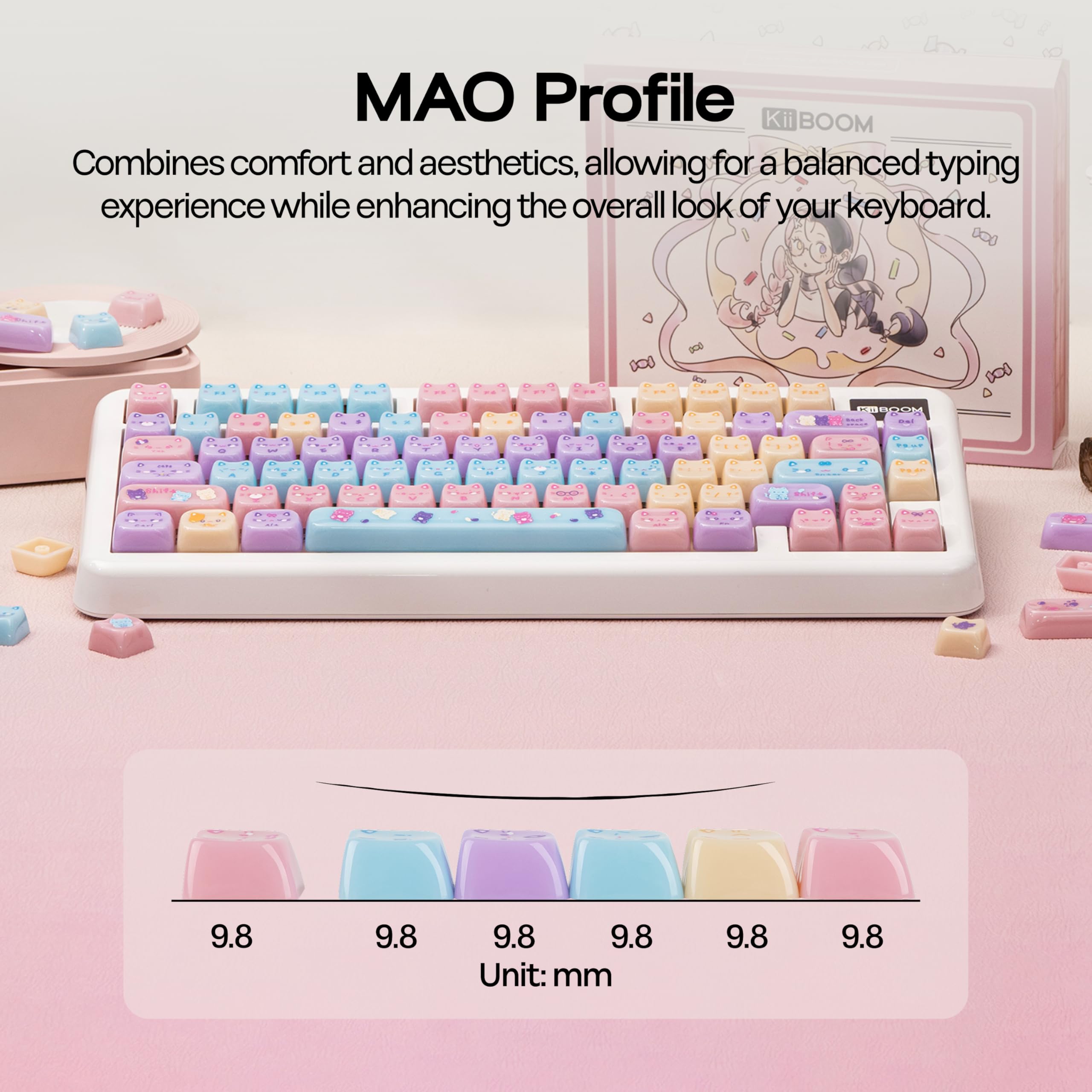 Profile: MAO Profile (Uniform 9.8mm height) – provides an ergonomic, balanced typing surface with a cute, rounded look.
