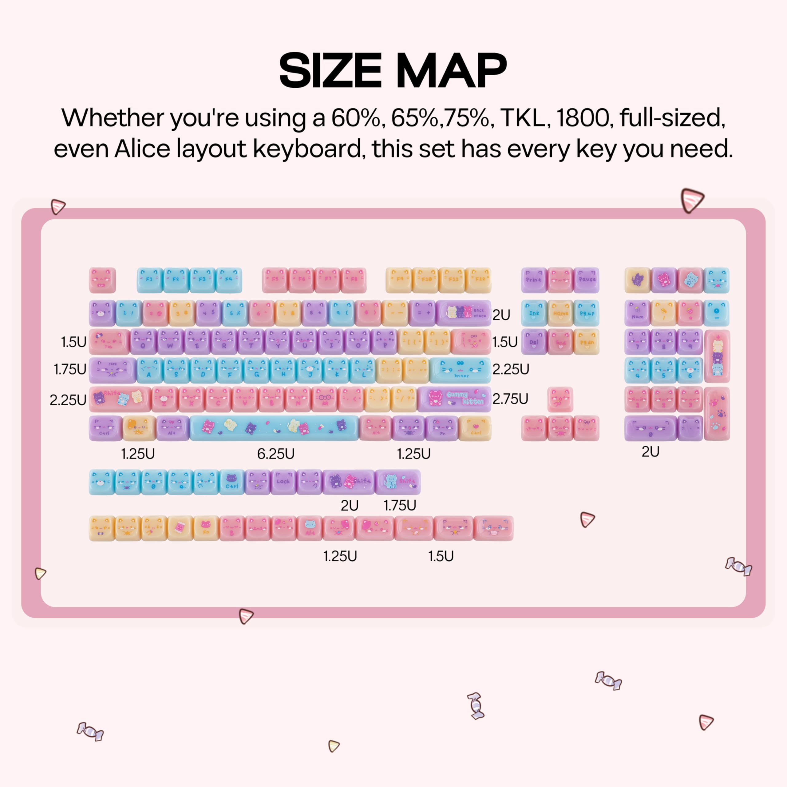 Cute Cat Artistry: Every key features a “Meow Meow” motif, from playful kitten expressions to paw prints, ensuring high consumer demand.